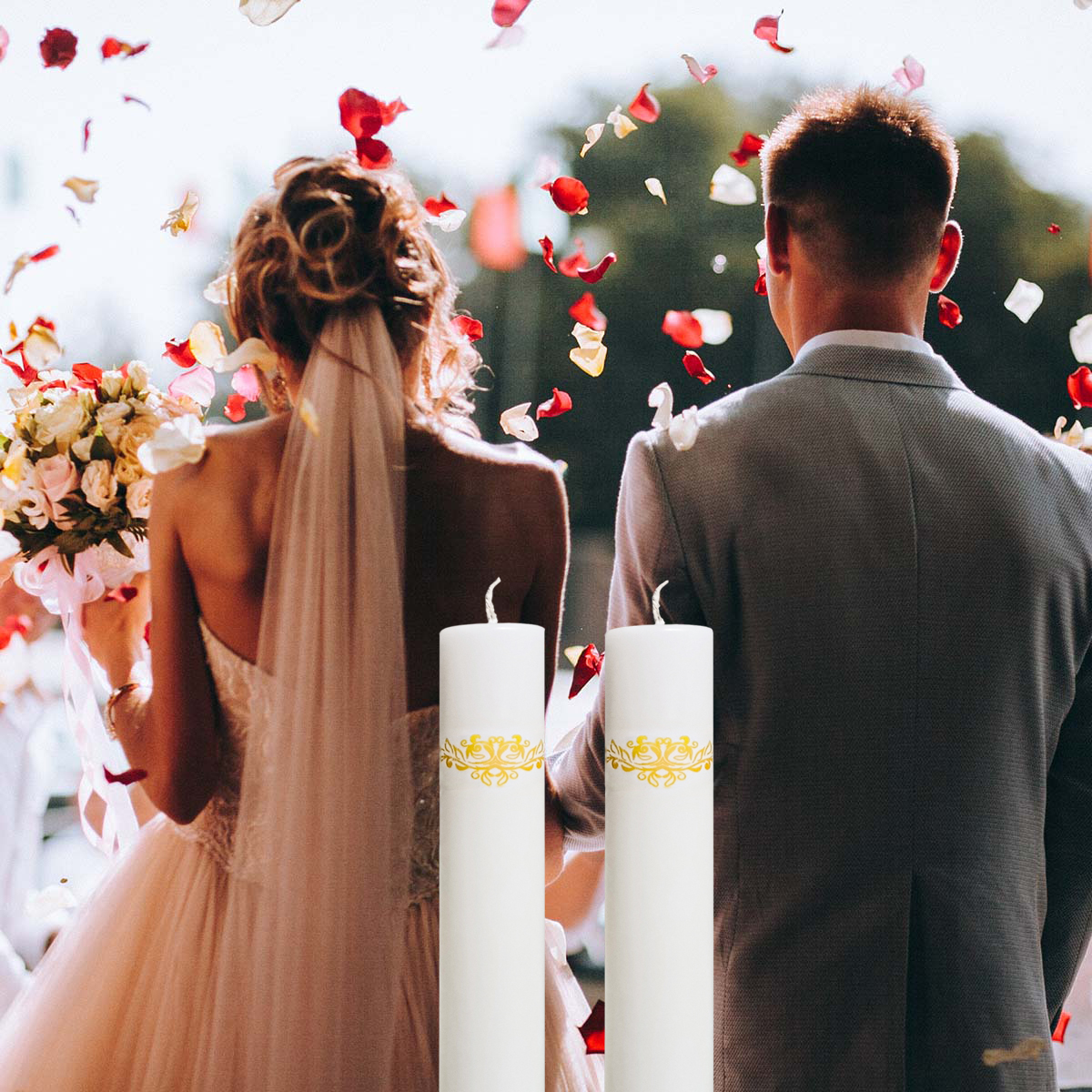 Aceste lumânări sunt disponibile în diverse dimensiuni pentru a se potrivi oricărui eveniment: înălțimi de 30 cm, 35 cm și 40 cm, și diametre de 4,6 cm, 5,6 cm și 6,6 cm. Fabricate cu atenție la detalii, aceste lumânări de nuntă oferă eleganță și rafinament fiecărei ocazii speciale.